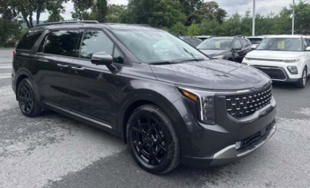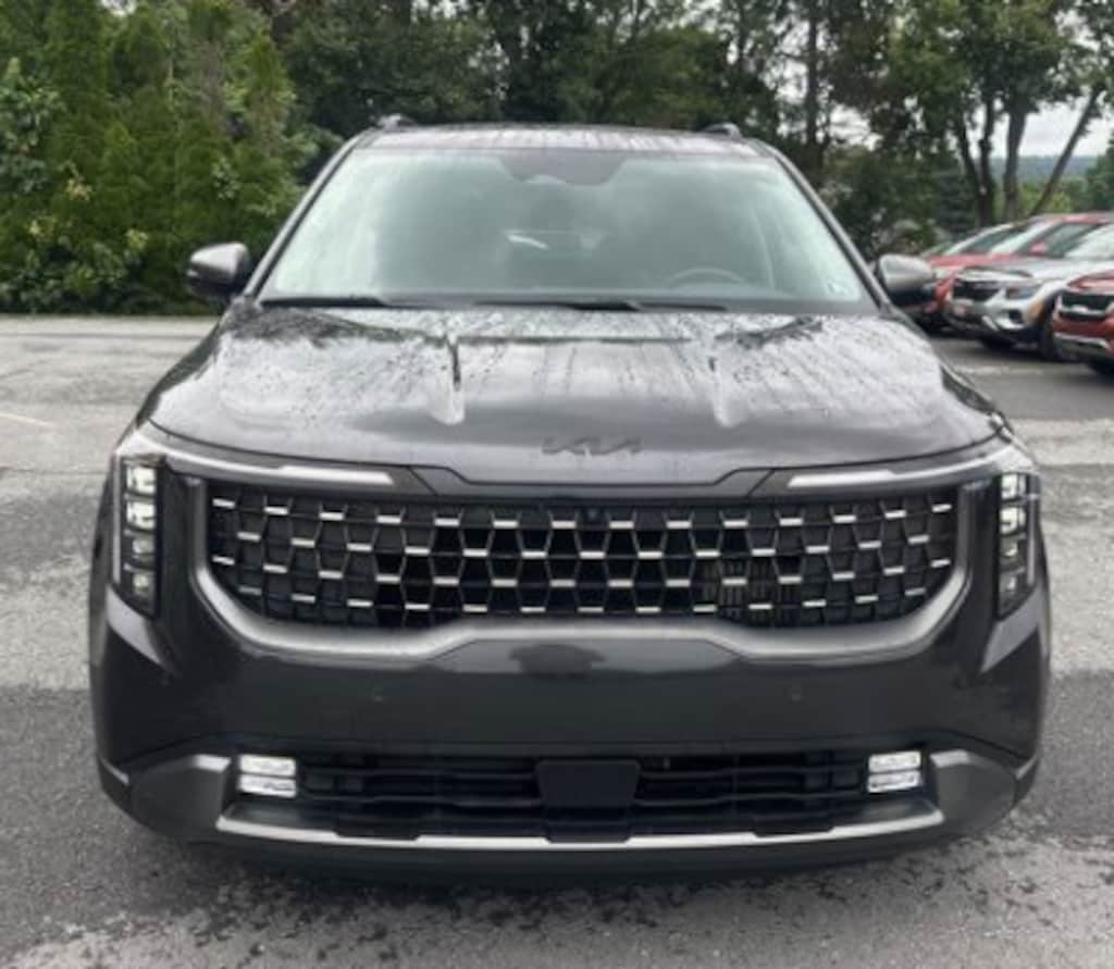 Check out all these great options SX Prestige Seat Package (2nd Row Laminated Windows, Ambient Lighting, Heated/Ventilated 2nd Row Power VIP Lounge Seats, and High Glossy Interior Trim), Kia Certified Pre-Owned Certified, 1.6L I4 DGI Hybrid Turbocharged DOHC 16V LEV3-SULEV30, 12 Speakers, 3rd row seats: split-bench, 4-Wheel Disc Brakes, ABS brakes, Air Conditioning, Alloy wheels, AM/FM radio: SiriusXM, Apple CarPlay & Android Auto, Auto High-beam Headlights, Auto-dimming Rear-View mirror, Automatic temperature control, Brake assist, Bumpers: body-color, Cargo Net, Cargo Tray, Compass, Cross Bars, Delay-off headlights, Driver door bin, Driver vanity mirror, Dual front impact airbags, Dual front side impact airbags, Electronic Stability Control, Emergency communication system, Exterior Parking Camera Rear, Four wheel independent suspension, Front anti-roll bar, Front Bucket Seats, Front Center Armrest, Front dual zone A/C, Front fog lights, Front reading lights, Fully automatic headlights, Garage door transmitter: HomeLink, Heads-Up Display, Heated & Ventilated Front Bucket Seats, Heated door mirrors, Heated front seats, Heated steering wheel, Illuminated entry, Knee airbag, Leather Seat Trim, Leather Shift Knob, Leather steering wheel, Low tire pressure warning, Memory seat, Mud Guards, Navigation system: AVN 5.0 Navigation System, Occupant sensing airbag, Outside temperature display, Overhead airbag, Overhead console, Panic alarm, Passenger door bin, Passenger vanity mirror, Power 2nd-Row Moonroof, Power door mirrors, Power driver seat, Power Liftgate, Power moonroof, Power passenger seat, Power steering, Power windows, Radio: AVN 5.0 Navigation System w/SiriusXM, Rain sensing wipers, Rear air conditioning, Rear anti-roll bar, Rear reading lights, Rear window defroster, Rear window wiper, Reclining 3rd row seat, Remote keyless entry, Security system, Speed control, Speed-sensing steering, Split folding rear seat, Spoiler, Steering wheel mounted audio controls, Tachometer, Telescoping steering wheel, Tilt steering wheel, Tow Hitch (PNP), Traction control, Trailer Prewire Harness, Trip computer, Turn signal indicator mirrors, Variably intermittent wipers, Ventilated front seats, and Wheels: 7.5J x 19" Alloy Dark Edition.