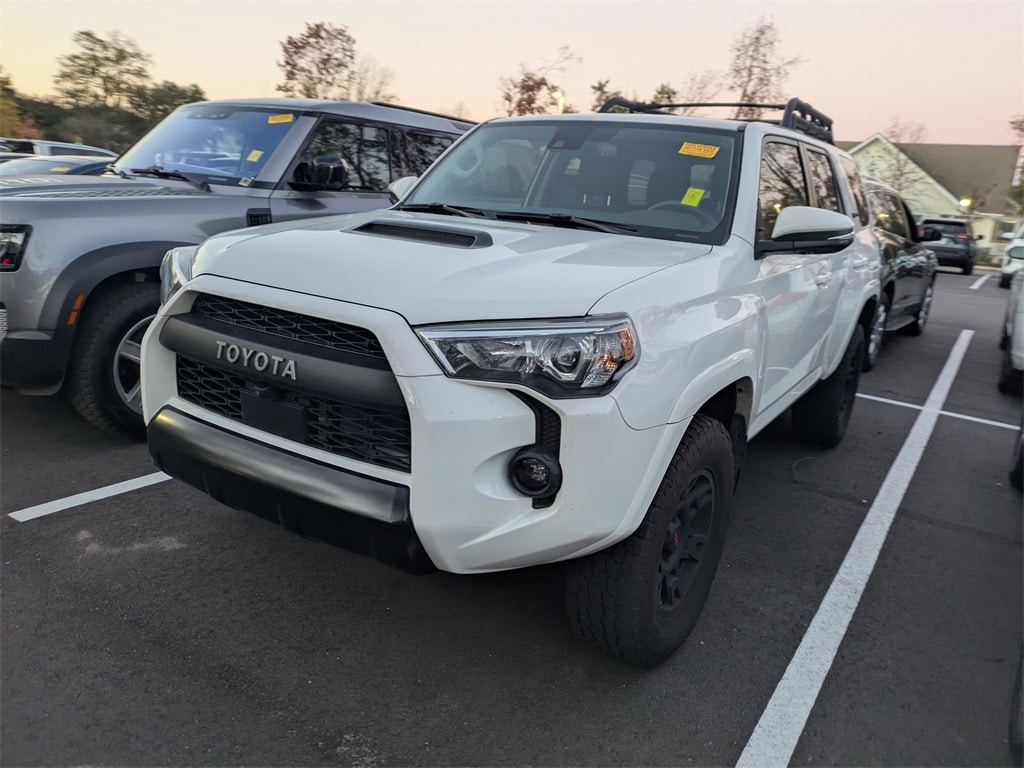 Toyota Gold Certified Certified, 4WD, Black/Graphite w/Leather Seat Trim, 15 Speakers, 3.727 Axle Ratio, 4-Wheel Disc Brakes, ABS brakes, Air Conditioning, Alloy wheels, AM/FM radio: SiriusXM, Anti-whiplash front head restraints, Apple CarPlay/Android Auto, Auto High-beam Headlights, Auto-dimming Rear-View mirror, Automatic temperature control, Black Lug Nuts, Brake assist, Bumpers: body-color, Compass, Driver door bin, Driver vanity mirror, Dual front impact airbags, Dual front side impact airbags, Dual Zone Auto Climate Control, Electronic Stability Control, Emergency communication system: Safety Connect (1-year trial), Exterior Parking Camera Rear, Fog Lights, Fox Shocks, Front anti-roll bar, Front Bucket Seats, Front Center Armrest, Front dual zone A/C, Front fog lights, Front reading lights, Front wheel independent suspension, Garage Door Opener, Garage door transmitter: HomeLink, Heated door mirrors, Heated Front Bucket Seats, Heated front seats, Heated Outside Rear-View Mirrors, Heated steering wheel, Illuminated entry, Knee airbag, Leather Shift Knob, Low tire pressure warning, Moonroof w/Tilt Up & Slide, Multi-Terrain Back Monitor, Navigation System, Occupant sensing airbag, Outside temperature display, Overhead airbag, Overhead console, Panic alarm, Passenger door bin, Passenger vanity mirror, Power door mirrors, Power driver seat, Power moonroof, Power passenger seat, Power steering, Power windows, Radio: Premium Audio w/JBL, Rear anti-roll bar, Rear seat center armrest, Rear window defroster, Rear window wiper, Remote keyless entry, Roof rack, Roof Rack, Security system, SofTex Seat Trim, Speed control, Speed-sensing steering, Split folding rear seat, Spoiler, Steering wheel mounted audio controls, Tachometer, Telescoping steering wheel, Tilt steering wheel, Traction control, TRD Pro All Weather Floor Liner, TRD Pro Badging, TRD Pro Exhaust, TRD Shift Knob, Trip computer, Variably intermittent wipers, Wheel Locks, and Wheels: 17" Matte Black Flow-Formed TRD Alloy.