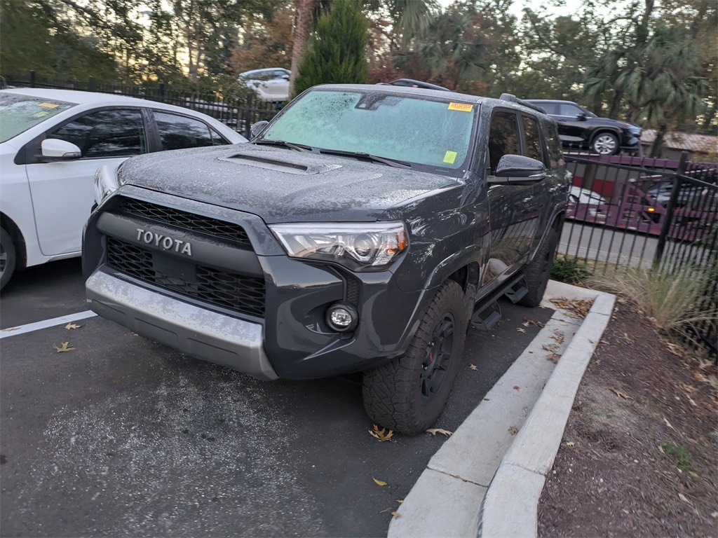 Toyota Gold Certified Certified, 4WD, Black/Graphite w/Leather Seat Trim, 3.727 Axle Ratio, 4-Wheel Disc Brakes, 8 Speakers, ABS brakes, Air Conditioning, Alloy wheels, AM/FM radio: SiriusXM, Anti-whiplash front head restraints, Apple CarPlay/Android Auto, Auto High-beam Headlights, Auto-dimming Rear-View mirror, Black Roof Rails, Brake assist, Bumpers: body-color, Compass, Driver door bin, Driver vanity mirror, Dual front impact airbags, Dual front side impact airbags, Electronic Stability Control, Emergency communication system: Safety Connect (1-year trial), Exterior Parking Camera Rear, Front anti-roll bar, Front Bucket Seats, Front Center Armrest, Front fog lights, Front reading lights, Front wheel independent suspension, Garage Door Opener, Garage door transmitter: HomeLink, Heated door mirrors, Heated Front Bucket Seats, Heated front seats, Heated Outside Rear-View Mirrors, Heated steering wheel, Illuminated entry, Knee airbag, Leather Shift Knob, Low tire pressure warning, Navigation System, Occupant sensing airbag, Outside temperature display, Overhead airbag, Overhead console, Panic alarm, Passenger door bin, Passenger vanity mirror, Power door mirrors, Power driver seat, Power passenger seat, Power steering, Power windows, Radio: Premium Audio, Rear anti-roll bar, Rear seat center armrest, Rear window defroster, Rear window wiper, Remote keyless entry, Security system, SofTex Seat Trim, Speed control, Speed-sensing steering, Split folding rear seat, Spoiler, Steering wheel mounted audio controls, Tachometer, Telescoping steering wheel, Tilt steering wheel, Traction control, Trip computer, Turn signal indicator mirrors, Variably intermittent wipers, and Wheels: 17" Unique 7-Spoke Off-Road Alloy.