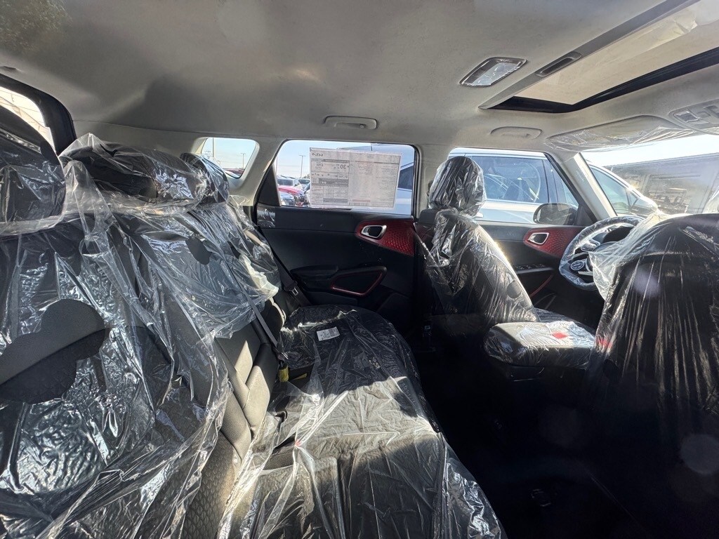 2025 Kia Soul GT-Line Black 4-Wheel Disc Brakes, 6 Speakers, 7.5J x 18" Alloy Wheels, ABS brakes, Air Conditioning, Alloy wheels, AM/FM radio: SiriusXM, Apple CarPlay & Android Auto, Auto High-beam Headlights, Automatic temperature control, Brake assist, Bumpers: body-color, Combination Cloth/Artificial Leather Seat Trim, Compass, Delay-off headlights, Driver door bin, Driver vanity mirror, Dual front impact airbags, Dual front side impact airbags, Electronic Stability Control, Emergency communication system, Exterior Parking Camera Rear, Front anti-roll bar, Front Bucket Seats, Front Center Armrest, Front dual zone A/C, Front reading lights, Front wheel independent suspension, Fully automatic headlights, Heated door mirrors, Illuminated entry, Leather Shift Knob, Leather steering wheel, Low tire pressure warning, Navigation System, Occupant sensing airbag, Outside temperature display, Overhead airbag, Overhead console, Panic alarm, Passenger door bin, Passenger vanity mirror, Power door mirrors, Power moonroof, Power steering, Power windows, Radio data system, Radio: AM/FM/MP3/HD Audio System, Rear seat center armrest, Rear window defroster, Rear window wiper, Remote keyless entry, Speed control, Speed-sensing steering, Split folding rear seat, Sport steering wheel, Steering wheel mounted audio controls, Tachometer, Telescoping steering wheel, Tilt steering wheel, Traction control, Trip computer, Turn signal indicator mirrors, Variably intermittent wipers.