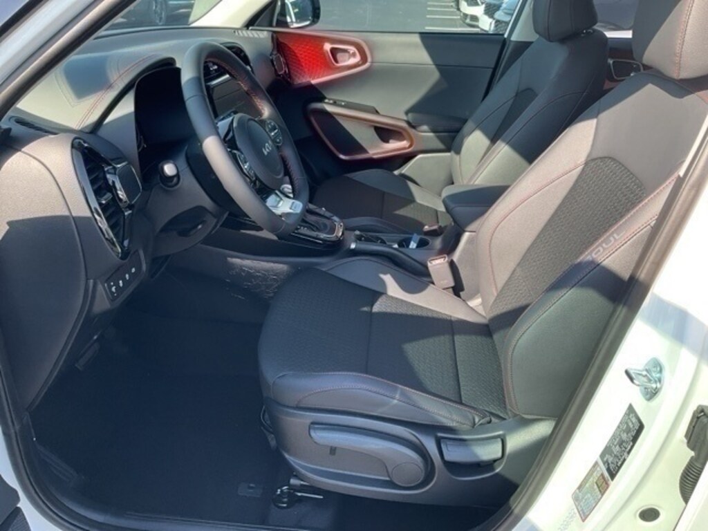 2025 Kia Soul GT-Line Snow White Pearl 4-Wheel Disc Brakes, 6 Speakers, 7.5J x 18" Alloy Wheels, ABS brakes, Air Conditioning, Alloy wheels, AM/FM radio: SiriusXM, Apple CarPlay & Android Auto, Auto High-beam Headlights, Automatic temperature control, Brake assist, Bumpers: body-color, Cargo Net, Carpeted Floor Mats, Combination Cloth/Artificial Leather Seat Trim, Compass, Delay-off headlights, Driver door bin, Driver vanity mirror, Dual front impact airbags, Dual front side impact airbags, Electronic Stability Control, Emergency communication system, Exterior Parking Camera Rear, Front anti-roll bar, Front Bucket Seats, Front Center Armrest, Front dual zone A/C, Front reading lights, Front wheel independent suspension, Fully automatic headlights, Heated door mirrors, Illuminated entry, Leather Shift Knob, Leather steering wheel, Low tire pressure warning, Navigation System, Occupant sensing airbag, Outside temperature display, Overhead airbag, Overhead console, Panic alarm, Passenger door bin, Passenger vanity mirror, Power door mirrors, Power moonroof, Power steering, Power windows, Radio data system, Radio: AM/FM/MP3/HD Audio System, Rear seat center armrest, Rear window defroster, Rear window wiper, Remote keyless entry, Speed control, Speed-sensing steering, Split folding rear seat, Sport steering wheel, Steering wheel mounted audio controls, Tachometer, Telescoping steering wheel, Tilt steering wheel, Traction control, Trip computer, Turn signal indicator mirrors, Variably intermittent wipers.