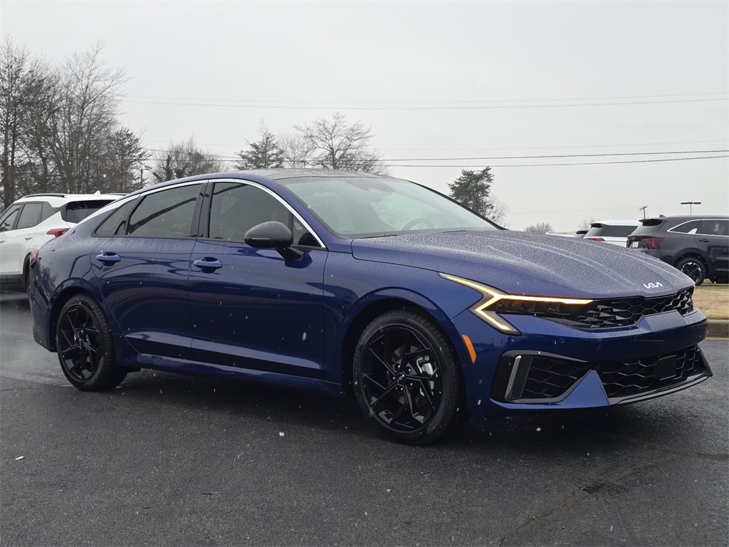 2026 Kia K5 GT-Line Yacht Blue 4-Wheel Disc Brakes, 6 Speakers, ABS brakes, Active Sound Design, Air Conditioning, Alloy wheels, AM/FM radio: SiriusXM, Auto High-beam Headlights, Automatic temperature control, Bose Premium Audio, Brake assist, Bumpers: body-color, Carpeted Floor Mats, Delay-off headlights, Driver door bin, Driver vanity mirror, Dual front impact airbags, Dual front side impact airbags, Electronic Stability Control, Emergency communication system: Kia Connect (includes 1 year free trial), Four wheel independent suspension, Front anti-roll bar, Front Bucket Seats, Front Center Armrest, Front dual zone A/C, Front fog lights, Front reading lights, Fully automatic headlights, GT-Line Premium Package, Heated door mirrors, Heated Front Bucket Seats, Heated front seats, Illuminated entry, Knee airbag, Leather Shift Knob, Leather steering wheel, LED Interior Lighting, LED Trunk Light, Low tire pressure warning, Navigation System, Occupant sensing airbag, Outside temperature display, Overhead airbag, Overhead console, Panic alarm, Panoramic Sunroof, Passenger door bin, Passenger vanity mirror, Power door mirrors, Power driver seat, Power steering, Power windows, Radio data system, Radio: AM/FM Audio System, Rear anti-roll bar, Rear seat center armrest, Rear side impact airbag, Rear window defroster, Remote keyless entry, Security system, Speed control, Speed-sensing steering, Split folding rear seat, Sport steering wheel, Steering wheel mounted audio controls, Tachometer, Telescoping steering wheel, Tilt steering wheel, Traction control, Trip computer, Turn signal indicator mirrors, Variably intermittent wipers, Wheels: 18" x 7.5J Gloss Black Machined Finish Alloy, Wheels: 18" x 7.5J Unique Gloss Black Alloy.