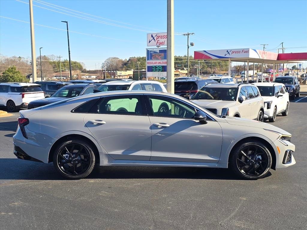 2026 Kia K5 GT-Line Wolf Gray 4-Wheel Disc Brakes, 6 Speakers, ABS brakes, Active Sound Design, Air Conditioning, Alloy wheels, AM/FM radio: SiriusXM, Auto High-beam Headlights, Automatic temperature control, Bose Premium Audio, Brake assist, Bumpers: body-color, Carpeted Floor Mats, Delay-off headlights, Driver door bin, Driver vanity mirror, Dual front impact airbags, Dual front side impact airbags, Electronic Stability Control, Emergency communication system: Kia Connect (includes 1 year free trial), Four wheel independent suspension, Front anti-roll bar, Front Bucket Seats, Front Center Armrest, Front dual zone A/C, Front fog lights, Front reading lights, Fully automatic headlights, GT-Line Premium Package, Heated door mirrors, Heated Front Bucket Seats, Heated front seats, Heated steering wheel, Illuminated entry, Knee airbag, Leather Shift Knob, Leather steering wheel, LED Interior Lighting, LED Trunk Light, Low tire pressure warning, Navigation System, Occupant sensing airbag, Outside temperature display, Overhead airbag, Overhead console, Panic alarm, Panoramic Sunroof, Passenger door bin, Passenger vanity mirror, Power door mirrors, Power driver seat, Power steering, Power windows, Radio data system, Radio: AM/FM Audio System, Rear anti-roll bar, Rear seat center armrest, Rear side impact airbag, Rear window defroster, Remote keyless entry, Security system, Speed control, Speed-sensing steering, Split folding rear seat, Sport steering wheel, Steering wheel mounted audio controls, Tachometer, Telescoping steering wheel, Tilt steering wheel, Traction control, Trip computer, Turn signal indicator mirrors, Variably intermittent wipers, Wheels: 18" x 7.5J Gloss Black Machined Finish Alloy, Wheels: 18" x 7.5J Unique Gloss Black Alloy.