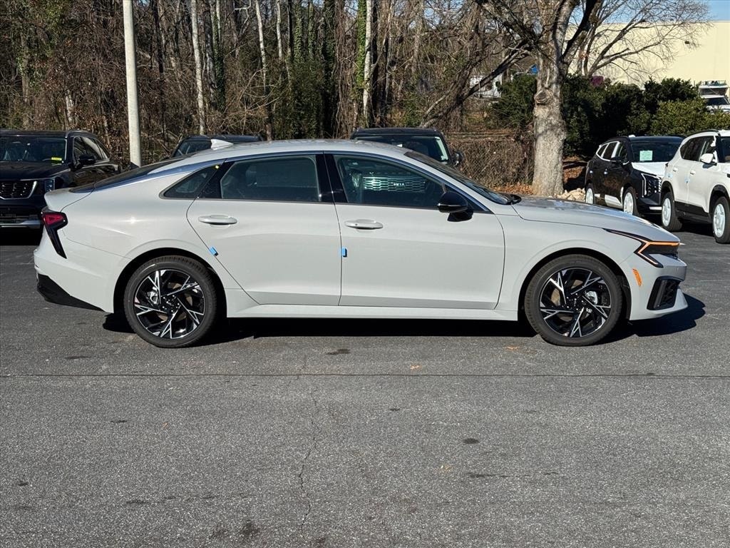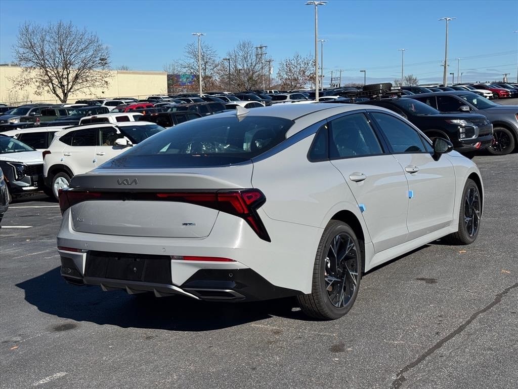 2026 Kia K5 GT-Line Wolf Gray 4-Wheel Disc Brakes, 6 Speakers, ABS brakes, Air Conditioning, Alloy wheels, AM/FM radio: SiriusXM, Auto High-beam Headlights, Auto-Dimming Mirror with HomeLink, Automatic temperature control, Brake assist, Bumpers: body-color, Carpeted Floor Mats, Delay-off headlights, Driver door bin, Driver vanity mirror, Dual front impact airbags, Dual front side impact airbags, Electronic Stability Control, Emergency communication system: Kia Connect (includes 1 year free trial), Four wheel independent suspension, Front anti-roll bar, Front Bucket Seats, Front Center Armrest, Front dual zone A/C, Front fog lights, Front reading lights, Fully automatic headlights, Heated door mirrors, Heated Front Bucket Seats, Heated front seats, Heated steering wheel, Illuminated entry, Knee airbag, Leather Shift Knob, Leather steering wheel, Low tire pressure warning, Navigation System, Occupant sensing airbag, Outside temperature display, Overhead airbag, Overhead console, Panic alarm, Passenger door bin, Passenger vanity mirror, Power door mirrors, Power driver seat, Power steering, Power windows, Radio data system, Radio: AM/FM Audio System, Rear anti-roll bar, Rear seat center armrest, Rear side impact airbag, Rear window defroster, Remote keyless entry, Security system, Speed control, Speed-sensing steering, Split folding rear seat, Sport steering wheel, Steering wheel mounted audio controls, Tachometer, Telescoping steering wheel, Tilt steering wheel, Traction control, Trip computer, Turn signal indicator mirrors, Variably intermittent wipers, Wheels: 18" x 7.5J Gloss Black Machined Finish Alloy.