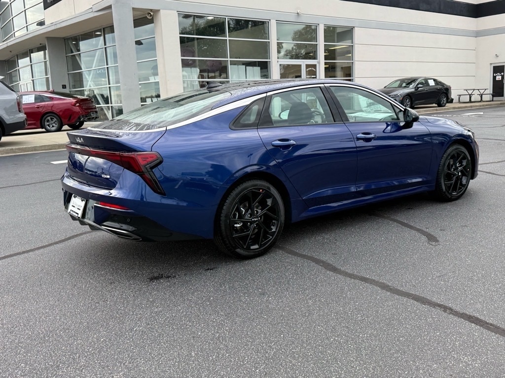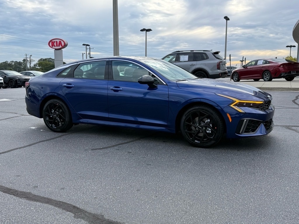 2026 Kia K5 GT-Line Yacht Blue 4-Wheel Disc Brakes, 6 Speakers, ABS brakes, Active Sound Design, Air Conditioning, Alloy wheels, AM/FM radio: SiriusXM, Auto High-beam Headlights, Auto-Dimming Mirror w/HomeLink, Automatic temperature control, Bose Premium Audio, Brake assist, Bumpers: body-color, Cargo Net, Delay-off headlights, Driver door bin, Driver vanity mirror, Dual front impact airbags, Dual front side impact airbags, Electronic Stability Control, Emergency communication system: Kia Connect (includes 1 year free trial), Four wheel independent suspension, Front anti-roll bar, Front Bucket Seats, Front Center Armrest, Front dual zone A/C, Front fog lights, Front reading lights, Fully automatic headlights, GT-Line Premium Package, Heated door mirrors, Heated Front Bucket Seats, Heated front seats, Heated steering wheel, Illuminated entry, Knee airbag, Leather Shift Knob, Leather steering wheel, LED Interior Lighting, LED Trunk Light, Low tire pressure warning, Navigation System, Occupant sensing airbag, Outside temperature display, Overhead airbag, Overhead console, Panic alarm, Panoramic Sunroof, Passenger door bin, Passenger vanity mirror, Power door mirrors, Power driver seat, Power steering, Power windows, Radio data system, Radio: AM/FM Audio System, Rear anti-roll bar, Rear seat center armrest, Rear side impact airbag, Rear window defroster, Remote keyless entry, Security system, Speed control, Speed-sensing steering, Split folding rear seat, Sport steering wheel, Steering wheel mounted audio controls, Tachometer, Telescoping steering wheel, Tilt steering wheel, Traction control, Trip computer, Turn signal indicator mirrors, Variably intermittent wipers, Wheels: 18" x 7.5J Gloss Black Machined Finish Alloy, Wheels: 18" x 7.5J Unique Gloss Black Alloy.