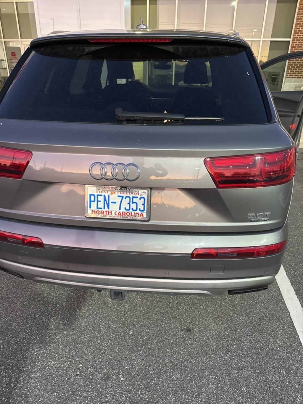 Check out all these great options Audi MMI Navigation Plus Package (Audi Connect CARE, Audi Connect PRIME & PLUS, Audi MMI Navigation Plus w/MMI Touch, and Audi Smartphone Integration), Driver Assistance Package (Audi Active Lane Assist, Audi Adaptive Cruise Control w/Stop & Go, Audi Pre Sense Front, High-Beam Assistant, and Traffic Sign Recognition), LED Interior Lighting Package, Premium Plus Package (Audi Advanced Key, Audi Side Assist, Electric Tilt/Telescopic Steering Column, Heated Auto-Dimming Power Folding Exterior Mirrors, and Stainless Steel Trunk Sill), Towing Package, Vision Package (Audi Virtual Cockpit, Full LED Headlights, and Top View Camera System), Warm Weather Package (4-Zone Automatic Climate Control, Driver & Passenger Front Seats w/Ventilation, and Manual Window Shades For Rear Doors & Tailgate), 10 Speakers, 3.204 Axle Ratio, 3D Bose Surround Sound System, 3rd row seats: bench, 4-Wheel Disc Brakes, 7 Pin Connector for Towing Hitch, ABS brakes, Air Conditioning, Alloy wheels, AM/FM radio: SiriusXM, Audi Guard All-Weather Floor Mats, Auto-dimming Rear-View mirror, Automatic temperature control, Black Cloth Headliner, Brake assist, Bumpers: body-color, CD player, Compass, Delay-off headlights, DELETE Front License Plate Holder, Driver door bin, Driver vanity mirror, Driver's Seat Mounted Armrest, Dual front impact airbags, Dual front side impact airbags, Electronic Stability Control, Exterior Parking Camera Rear, Four wheel independent suspension, Front anti-roll bar, Front Bucket Seats, Front dual zone A/C, Front fog lights, Front reading lights, Fully automatic headlights, Garage door transmitter: HomeLink, Heated door mirrors, Heated Front Bucket Seats, Heated front seats, High Gloss Black/Gray Oak Inlays, High intensity discharge headlights: Xenon plus, Illuminated entry, Leather Seating Surfaces, Leather Shift Knob, Leather steering wheel, Low tire pressure warning, Memory seat, Occupant sensing airbag, Outside temperature display, Overhead airbag, Panic alarm, Passenger door bin, Passenger seat mounted armrest, Passenger vanity mirror, Power door mirrors, Power driver seat, Power Liftgate, Power moonroof, Power passenger seat, Power steering, Power windows, Privacy Trunk Cover, Radio data system, Radio: MMI Radio Plus w/Audi Sound System, Rain sensing wipers, Rear air conditioning, Rear anti-roll bar, Rear fog lights, Rear reading lights, Rear seat center armrest, Rear Seat Entertainment Preparation, Rear window defroster, Rear window wiper, Remote keyless entry, Roof rack: rails only, Security system, Speed control, Speed-sensing steering, Split folding rear seat, Spoiler, Steering wheel mounted audio controls, Tachometer, Telescoping steering wheel, Tilt steering wheel, Traction control, Trip computer, Turn signal indicator mirrors, USB Cables, Variably intermittent wipers, Vehicle Jack, Wheels: 19" 5-V-Spoke Design, and Wheels: 20" 10-Spoke-Star Design.