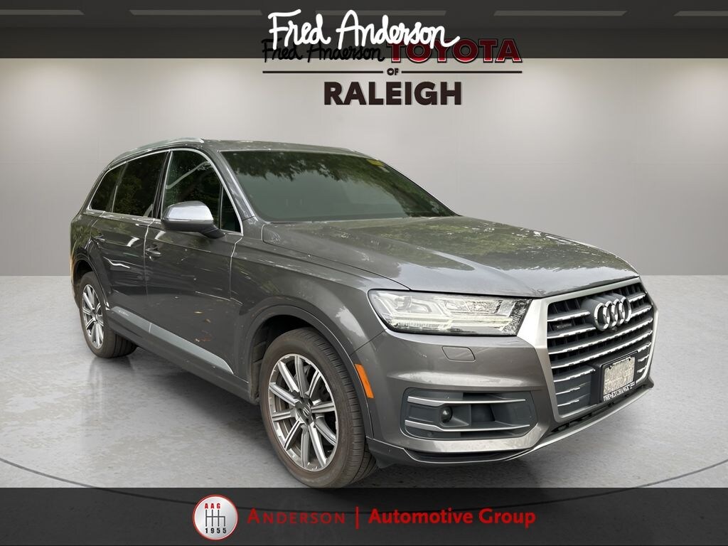 Clean CARFAX. Bluetooth, Hands-Free, We will buy your car and pay top dollar for it, even if you don't buy ours!!. Check out all these great options 10 Speakers, 3.204 Axle Ratio, 3rd row seats: bench, 4-Wheel Disc Brakes, ABS brakes, Air Conditioning, Alloy wheels, AM/FM radio: SiriusXM, Auto-dimming Rear-View mirror, Automatic temperature control, Brake assist, Bumpers: body-color, CD player, Compass, Delay-off headlights, Driver door bin, Driver vanity mirror, Driver's Seat Mounted Armrest, Dual front impact airbags, Dual front side impact airbags, Electronic Stability Control, Exterior Parking Camera Rear, Four wheel independent suspension, Front anti-roll bar, Front Bucket Seats, Front dual zone A/C, Front fog lights, Front reading lights, Fully automatic headlights, Garage door transmitter: HomeLink, Heated door mirrors, Heated Front Bucket Seats, Heated front seats, High intensity discharge headlights: Xenon plus, Illuminated entry, Leather Seating Surfaces, Leather Shift Knob, Leather steering wheel, Low tire pressure warning, Memory seat, Occupant sensing airbag, Outside temperature display, Overhead airbag, Panic alarm, Passenger door bin, Passenger seat mounted armrest, Passenger vanity mirror, Power door mirrors, Power driver seat, Power Liftgate, Power moonroof, Power passenger seat, Power steering, Power windows, Radio data system, Radio: MMI Radio Plus w/Audi Sound System, Rain sensing wipers, Rear air conditioning, Rear anti-roll bar, Rear fog lights, Rear reading lights, Rear seat center armrest, Rear window defroster, Rear window wiper, Remote keyless entry, Roof rack: rails only, Security system, Speed control, Speed-sensing steering, Split folding rear seat, Spoiler, Steering wheel mounted audio controls, Tachometer, Telescoping steering wheel, Tilt steering wheel, Traction control, Trip computer, Turn signal indicator mirrors, Variably intermittent wipers, and Wheels: 19" 5-V-Spoke DesignStop by and test drive today. Let us show you how affordable we can make it. Remember, we always give you more for your trade and we will buy your vehicle even if you don't buy one from us. See online @ www.FredAndersonToyota.com or see in person @ Fred Anderson Toyota 9101 Glenwood Ave. Raleigh NC, 27617. Recent Arrival! 2018 Audi Q7 3.0T Prestige quattro quattro 8-Speed Automatic with Tiptronic