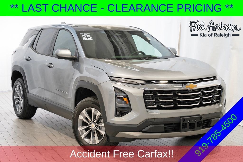 Clean CARFAX. Still Under Factory Powertrain Warranty!!, Still Under Factory Warranty!!, Accident Free Carfax!!, Alloy wheels / Premium Wheels, Bluetooth, Hands-Free, Local Trade, Star Safety System with Active Breaking Technologies, Keyless Entry, Keyless Start, Backup Camera, We will buy your car and pay top dollar for it, even if you don't buy ours!!, USB Port, AWD, Front Fog Lamps, HD Surround Vision, Rear Pedestrian Alert, Safety & Technology Package, Traffic Sign Recognition. Odometer is 12386 miles below market average! Check out all these great options Safety & Technology Package (Front Fog Lamps, HD Surround Vision, Rear Pedestrian Alert, and Traffic Sign Recognition), Preferred Equipment Group 2LT, AWD, 3.47 Final Drive Axle Ratio, 4-Wheel Disc Brakes, 6 Speakers, ABS brakes, Air Conditioning, Alloy wheels, AM/FM radio: SiriusXM, Auto High-beam Headlights, Brake assist, Bumpers: body-color, Cloth Seat Trim, Compass, Delay-off headlights, Driver 6-Way Manual Seat Adjuster, Driver door bin, Driver vanity mirror, Dual front impact airbags, Dual front side impact airbags, Electronic Stability Control, Emergency communication system: OnStar and Chevrolet connected services capable, Four wheel independent suspension, Front anti-roll bar, Front Bucket Seats, Front Center Armrest, Front Passenger 4-Way Manual Seat Adjuster, Front reading lights, Fully automatic headlights, Heated door mirrors, Heated Driver & Front Passenger Seats, Heated front seats, Heated steering wheel, Illuminated entry, Low tire pressure warning, Occupant sensing airbag, Outside temperature display, Overhead airbag, Overhead console, Panic alarm, Passenger door bin, Passenger vanity mirror, Power door mirrors, Power steering, Power windows, Premium audio system: Chevrolet Infotainment 3, Radio data system, Radio: 11.3" Diagonal Advanced Color LCD Display, Rear anti-roll bar, Rear Camera Mirror Washer, Rear reading lights, Rear seat center armrest, Rear window defroster, Rear window wiper, Remote keyless entry, Security system, SiriusXM, Speed control, Speed-sensing steering, Split folding rear seat, Spoiler, Steering wheel mounted audio controls, Tachometer, Telescoping steering wheel, Tilt steering wheel, Traction control, Trip computer, Variably intermittent wipers, and Wheels: 17" Grazen Metallic Machined-Face AluminumStop by and test drive today. Let us show you how affordable we can make it. Remember, we always give you more for your trade and we will buy your vehicle even if you don't buy one from us. See online @ www.FredAndersonToyota.com or see in person @ Fred Anderson Toyota 9101 Glenwood Ave. Raleigh NC, 27617. Recent Arrival! 2025 Chevrolet Equinox LT AWD Sterling Gray Metallic 8-Speed Automatic