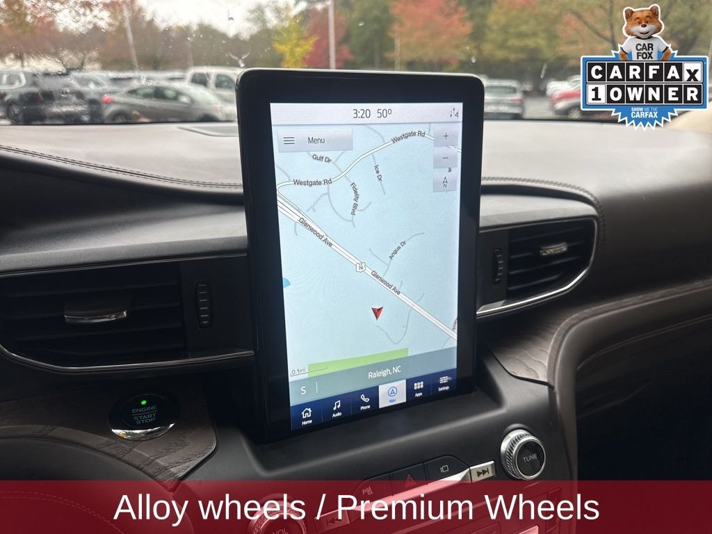 CARFAX One-Owner. Only One Owner and Accident Free Carfax!!, Navigation, Alloy wheels / Premium Wheels, Bluetooth, Hands-Free, Leather Seats, Local Trade, Star Safety System with Active Breaking Technologies, Keyless Entry, Keyless Start, Backup Camera, Sunroof / Panoramic Roof, We will buy your car and pay top dollar for it, even if you don't buy ours!!, USB Port, 4WD, 10.1" LCD Capacitive Portrait Touchscreen, 2 Additional Speakers, Leather Htd/Ventilated Sport Captain's Chairs, Navigation System, Premium Technology Package. Check out all these great options Premium Technology Package (10.1" LCD Capacitive Portrait Touchscreen, 2 Additional Speakers, and Leather Htd/Ventilated Sport Captain's Chairs), Equipment Group 600A, 4WD, Navigation System, 12 Speakers, 3.31 Non-Limited-Slip Axle Ratio, 3rd row seats: bench, 4-Wheel Disc Brakes, ABS brakes, Air Conditioning, Alloy wheels, AM/FM radio: SiriusXM, Auto High-beam Headlights, Auto-dimming door mirrors, Auto-dimming Rear-View mirror, Automatic temperature control, Brake assist, Bumpers: body-color, Compass, Delay-off headlights, Driver door bin, Driver vanity mirror, Dual front impact airbags, Dual front side impact airbags, Electronic Stability Control, Emergency communication system: SYNC 3 911 Assist, Exterior Parking Camera Rear, FordPass Connect, Four wheel independent suspension, Front anti-roll bar, Front Bucket Seats, Front Center Armrest, Front dual zone A/C, Front fog lights, Front reading lights, Fully automatic headlights, Garage door transmitter: HomeLink, Genuine wood dashboard insert, Heated door mirrors, Heated front seats, Heated rear seats, Heated steering wheel, Illuminated entry, Knee airbag, Leather steering wheel, Low tire pressure warning, Memory seat, Occupant sensing airbag, Outside temperature display, Overhead airbag, Overhead console, Panic alarm, Passenger door bin, Passenger vanity mirror, Power door mirrors, Power driver seat, Power Liftgate, Power moonroof, Power passenger seat, Power steering, Power windows, Radio data system, Radio: B&O Sound System by Bang & Olufsen, Rain sensing wipers, Rear air conditioning, Rear anti-roll bar, Rear reading lights, Rear window defroster, Rear window wiper, Remote keyless entry, Roof rack: rails only, Security system, Speed control, Speed-sensing steering, Speed-Sensitive Wipers, Split folding rear seat, Spoiler, Steering wheel memory, Steering wheel mounted audio controls, SYNC 3 Communications & Entertainment System, SYNC 3/Apple CarPlay/Android Auto, Tachometer, Telescoping steering wheel, Tilt steering wheel, Traction control, Trip computer, Turn signal indicator mirrors, Variably intermittent wipers, Ventilated front seats, Voice-Activated Touchscreen Navigation System, Wheels: 20" Bright Machined-Face Aluminum, and Wheels: 21" Premium Polished AluminumStop by and test drive today. Let us show you how affordable we can make it. Remember, we always give you more for your trade and we will buy your vehicle even if you don't buy one from us. See online @ www.FredAndersonToyota.com or see in person @ Fred Anderson Toyota 9101 Glenwood Ave. Raleigh NC, 27617. Recent Arrival! 2020 Ford Explorer Platinum 4WD Silver Spruce Metallic 10-Speed Automatic