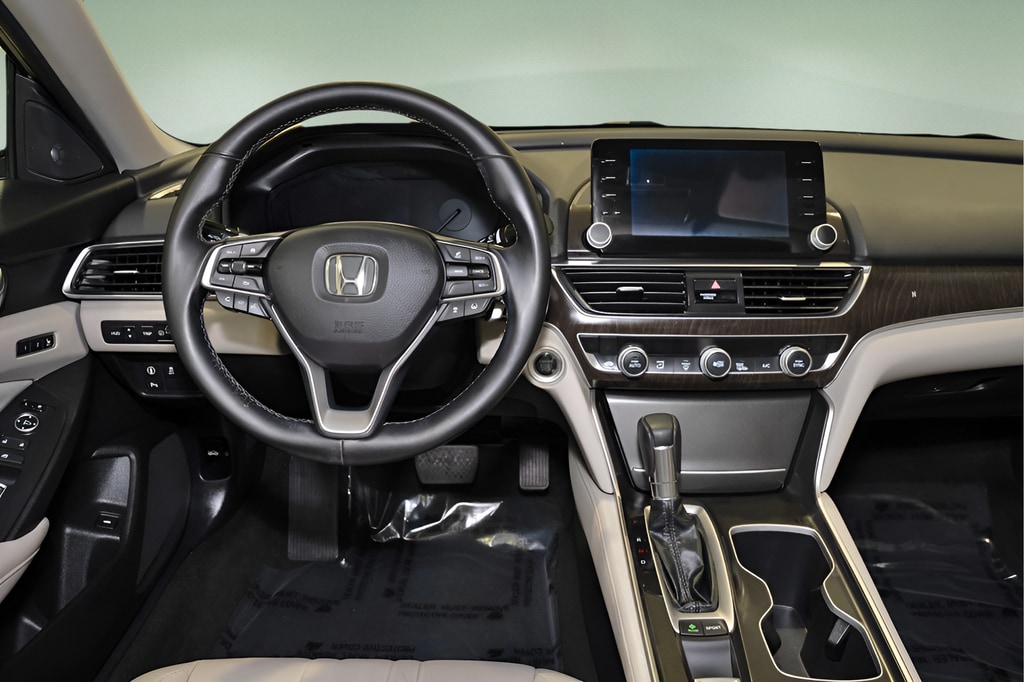 Check out all these great options 10 Speakers, 4-Wheel Disc Brakes, ABS brakes, Adaptive suspension, Air Conditioning, Alloy wheels, AM/FM radio: SiriusXM, Apple CarPlay/Android Auto, Auto High-beam Headlights, Auto-dimming Rear-View mirror, Automatic temperature control, Blind Spot Information (BSI) System warning, Brake assist, Bumpers: body-color, Compass, Delay-off headlights, Driver door bin, Driver vanity mirror, Dual front impact airbags, Dual front side impact airbags, Electronic Stability Control, Emergency communication system: HondaLink, Exterior Parking Camera Rear, Four wheel independent suspension, Front anti-roll bar, Front Bucket Seats, Front Center Armrest, Front dual zone A/C, Front fog lights, Front reading lights, Fully automatic headlights, Garage door transmitter: HomeLink, Heads-Up Display, Heated & Ventilated Front Bucket Seats, Heated door mirrors, Heated front seats, Heated rear seats, Illuminated entry, Knee airbag, Leather Shift Knob, Leather steering wheel, Leather-Trimmed Seats, Low tire pressure warning, Memory seat, Navigation System, Occupant sensing airbag, Outside temperature display, Overhead airbag, Overhead console, Panic alarm, Passenger door bin, Passenger vanity mirror, Power door mirrors, Power driver seat, Power moonroof, Power passenger seat, Power steering, Power windows, Radio data system, Radio: 450-Watt AM/FM/HD Premium Audio System, Rain sensing wipers, Rear anti-roll bar, Rear seat center armrest, Rear window defroster, Remote keyless entry, Security system, Speed control, Speed-sensing steering, Speed-Sensitive Wipers, Split folding rear seat, Steering wheel mounted audio controls, Tachometer, Telescoping steering wheel, Tilt steering wheel, Traction control, Trip computer, Turn signal indicator mirrors, Variably intermittent wipers, Ventilated front seats, and Wheels: 19" Machine-Finished Alloy w/Gray Inserts *** AVAILABLE AT FRED ANDERSON NISSAN OF RALEIGH. CALL US NOW 919-787-0254*** Honda Accord Champagne Frost Pearl Touring FWD CVT 1.5T I4 DOHC 16V Turbocharged VTEC