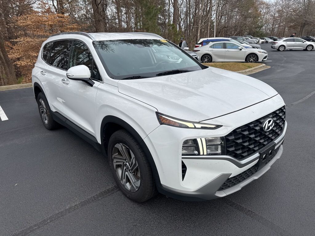 CARFAX One-Owner. Clean CARFAX. Still Under Factory Powertrain Warranty!!, Still Under Factory Warranty!!, Bluetooth, Hands-Free, Star Safety System with Active Breaking Technologies, Keyless Entry, Backup Camera, Security System, We will buy your car and pay top dollar for it, even if you don't buy ours!!, Black Cloth. Check out all these great options Option Group 01, Black Cloth, 18" x 7.5J Alloy Wheels, 4-Wheel Disc Brakes, 6 Speakers, ABS brakes, Air Conditioning, Alloy wheels, AM/FM radio: SiriusXM, Apple CarPlay & Android Auto, Auto High-beam Headlights, Automatic temperature control, Axle Ratio: 3.798, Brake assist, Bumpers: body-color, Delay-off headlights, Driver door bin, Driver vanity mirror, Dual front impact airbags, Dual front side impact airbags, Electronic Stability Control, Emergency communication system, Exterior Parking Camera Rear, Four wheel independent suspension, Front anti-roll bar, Front Bucket Seats, Front Center Armrest, Front dual zone A/C, Front reading lights, Fully automatic headlights, Heated door mirrors, Heated Front Bucket Seats, Heated front seats, Illuminated entry, Leather steering wheel, Low tire pressure warning, Navigation System, Occupant sensing airbag, Outside temperature display, Overhead airbag, Overhead console, Panic alarm, Passenger door bin, Passenger vanity mirror, Power door mirrors, Power driver seat, Power Liftgate, Power steering, Power windows, Radio: AM/FM Display Audio, Rear anti-roll bar, Rear seat center armrest, Rear window defroster, Rear window wiper, Remote keyless entry, Security system, Speed control, Speed-sensing steering, Split folding rear seat, Spoiler, Stain-Resistant Cloth Seat Trim, Steering wheel mounted audio controls, Tachometer, Telescoping steering wheel, Tilt steering wheel, Traction control, Trip computer, Turn signal indicator mirrors, and Variably intermittent wipersStop by and test drive today. Let us show you how affordable we can make it. Remember, we always give you more for your trade and we will buy your vehicle even if you don't buy one from us. See online @ www.FredAndersonToyota.com or see in person @ Fred Anderson Toyota 9101 Glenwood Ave. Raleigh NC, 27617. Recent Arrival! 2023 Hyundai Santa Fe SEL FWD Serenity White Pearl 8-Speed Automatic with SHIFTRONIC