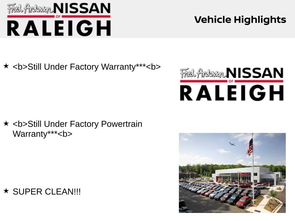 We'll buy your car, even if you don't buy ours! At Fred Anderson Nissan, we price our cars on line aggressively to the market to ensure you that not only are you getting an incredible car but also a great price. Come and see us for a hassle free purchase experience and find out why so many customers have made Fred Anderson Nissan of Raleigh their only destination to purchase a car. "Does not include tax, title, license, doc fee or Certification Fee.*