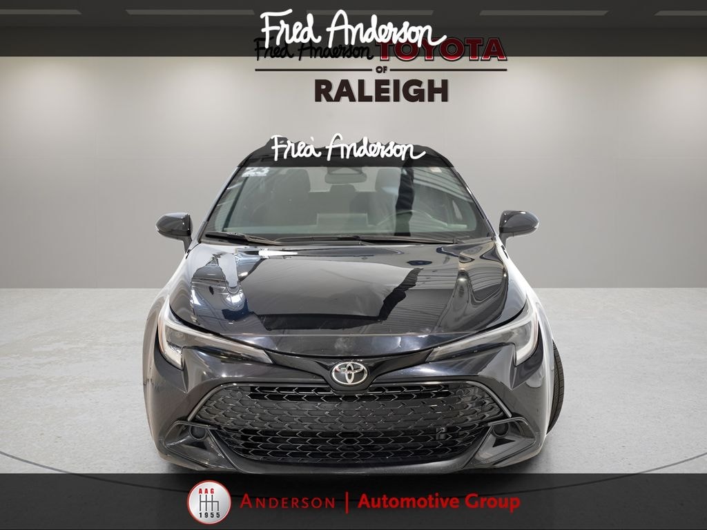CARFAX One-Owner. Priced below KBB Fair Purchase Price! *Full Family Plan* INCLUDES OIL CHANGES FOR LIFE!, Still Under Factory Powertrain Warranty!!, Only One Prior Owner!!, Alloy wheels / Premium Wheels, Bluetooth, Hands-Free, Star Safety System with Active Breaking Technologies, Keyless Entry, Backup Camera, We will buy your car and pay top dollar for it, even if you don't buy ours!!, USB Port. Check out all these great options 16" 10-Spoke Aluminum Wheels, 4-Wheel Disc Brakes, 6 Speakers, ABS brakes, Air Conditioning, Alloy wheels, AM/FM radio: SiriusXM, Auto High-beam Headlights, Automatic temperature control, Brake assist, Bumpers: body-color, Compass, Delay-off headlights, Driver door bin, Driver vanity mirror, Dual front impact airbags, Dual front side impact airbags, Electronic Stability Control, Emergency communication system: Safety Connect (up to 10-year trial subscription), Exterior Parking Camera Rear, Fabric Seat Trim, Four wheel independent suspension, Front anti-roll bar, Front Bucket Seats, Front Center Armrest, Front reading lights, Heated door mirrors, Illuminated entry, Knee airbag, Leather Shift Knob, Leather steering wheel, Low tire pressure warning, Occupant sensing airbag, Outside temperature display, Overhead airbag, Overhead console, Panic alarm, Passenger door bin, Passenger vanity mirror, Power door mirrors, Power steering, Power windows, Radio data system, Radio: 8" Toyota Audio Multimedia, Rear anti-roll bar, Rear seat center armrest, Rear side impact airbag, Rear window defroster, Rear window wiper, Remote keyless entry, Security system, Speed control, Speed-sensing steering, Split folding rear seat, Spoiler, Sport Front Seats, Steering wheel mounted audio controls, Tachometer, Telescoping steering wheel, Tilt steering wheel, Traction control, Trip computer, Turn signal indicator mirrors, and Variably intermittent wipersStop by and test drive today. Let us show you how affordable we can make it. Remember, we always give you more for your trade and we will buy your vehicle even if you don't buy one from us. See online @ www.FredAndersonToyota.com or see in person @ Fred Anderson Toyota 9101 Glenwood Ave. Raleigh NC, 27617. 2023 Toyota Corolla Hatchback SE FWD Midnight Black Metallic CVT