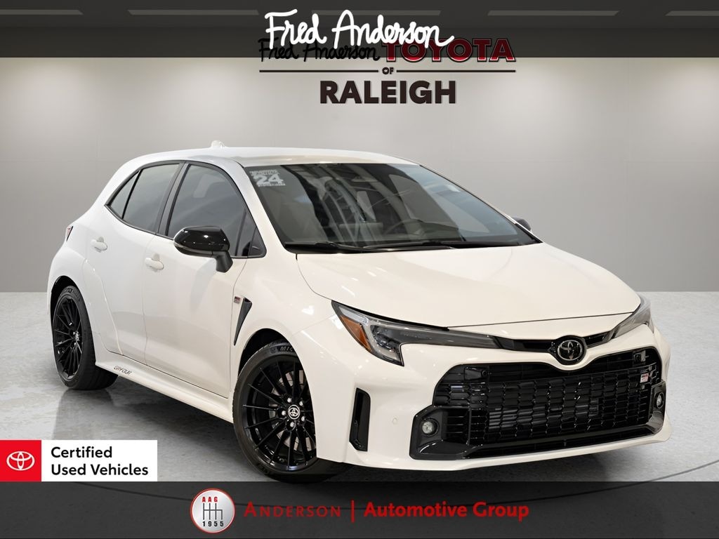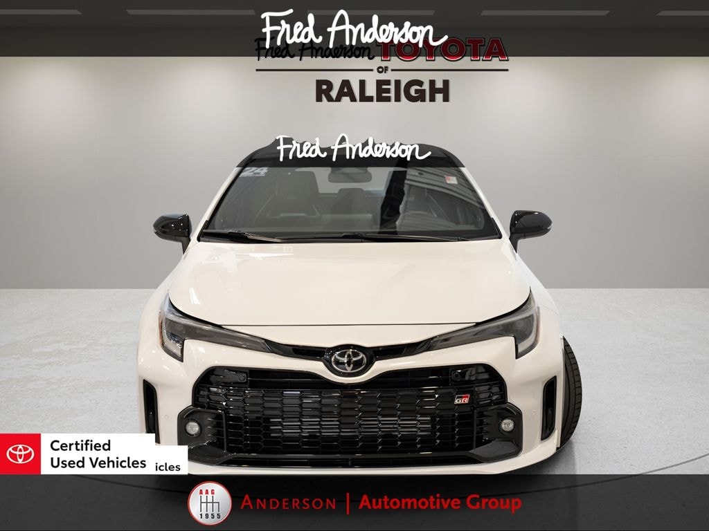CARFAX One-Owner. *Full Family Plan* INCLUDES OIL CHANGES FOR LIFE!, Still Under Factory Powertrain Warranty!!, Still Under Factory Warranty!!, Only One Owner and Accident Free Carfax!!, Navigation, Alloy wheels / Premium Wheels, Bluetooth, Hands-Free, Leather Seats, Local Trade, Star Safety System with Active Breaking Technologies, Keyless Entry, Keyless Start, Backup Camera, We will buy your car and pay top dollar for it, even if you don't buy ours!!, USB Port, Premium Package. Check out all these great options Premium Package, Toyota Gold Certified Certified, 4-Wheel Disc Brakes, 8 Speakers, ABS brakes, Air Conditioning, Alloy wheels, AM/FM radio: SiriusXM, Auto High-beam Headlights, Automatic temperature control, Brake assist, Brin Naub & Synthetic Leather Seat Trim, Bumpers: body-color, Compass, Delay-off headlights, Driver door bin, Driver vanity mirror, Dual front impact airbags, Dual front side impact airbags, Electronic Stability Control, Emergency communication system: Safety Connect (up to 10-year trial subscription), Exterior Parking Camera Rear, Four wheel independent suspension, Front anti-roll bar, Front Bucket Seats, Front fog lights, Front reading lights, Fully automatic headlights, Heated front seats, Heated Sport Front Seats, Heated steering wheel, Illuminated entry, Knee airbag, Leather Shift Knob, Leather steering wheel, Low tire pressure warning, Navigation system: Drive Connect Cloud Navigation (1-year trial subscription), Occupant sensing airbag, Outside temperature display, Overhead airbag, Overhead console, Panic alarm, Passenger door bin, Passenger vanity mirror, Power door mirrors, Power steering, Power windows, Radio data system, Radio: Toyota Audio Multimedia w/8 JBL Speakers, Rear anti-roll bar, Rear seat center armrest, Rear side impact airbag, Rear window defroster, Rear window wiper, Remote keyless entry, Security system, Speed control, Speed-sensing steering, Split folding rear seat, Spoiler, Sport steering wheel, Steering wheel mounted audio controls, Tachometer, Telescoping steering wheel, Tilt steering wheel, Traction control, Trip computer, Turn signal indicator mirrors, Variably intermittent wipers, and Wheels: 18" Gloss Black 15 Spoke Cast AlloyStop by and test drive today. Let us show you how affordable we can make it. Remember, we always give you more for your trade and we will buy your vehicle even if you don't buy one from us. See online @ www.FredAndersonToyota.com or see in person @ Fred Anderson Toyota 9101 Glenwood Ave. Raleigh NC, 27617. 2024 Toyota Certified. GR Corolla Premium AWD Ice Cap 6-Speed Manual